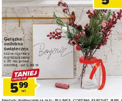 Gałązka świąteczna aktualnie nie występuje w bazie naszych gazetek promocyjnych. Nie martw się! Gdy tylko pojawi się ciekawa promocja na Gałązka świąteczna, umieścimy ją na naszej stronie