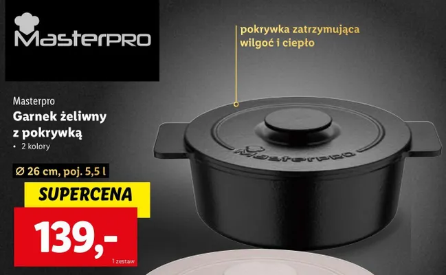 Przeglądaj podobne oferty promocyjne do Garnek żeliwny z pokrywką 26 cm Masterpro!