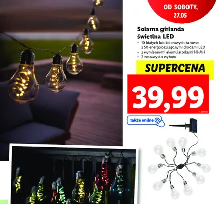 Cena produktu r贸偶ni si臋 w zale偶no艣ci od wybranego sklepu. Niestety nie posiadamy danych o aktualnych promocjach, jednak w艣r贸d archiwalnych ofert Girlanda 艣wietlna 10 led kolorowa kosztuje od 39,99 z艂.