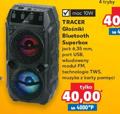 Cena produktu r贸偶ni si臋 w zale偶no艣ci od wybranego sklepu. Niestety nie posiadamy danych o aktualnych promocjach, jednak w艣r贸d archiwalnych ofert G艂o艣nik superbox Tracer kosztuje od 40 z艂 do 54,99 z艂.