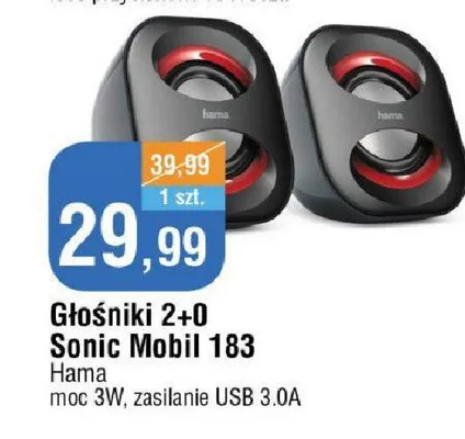 Cena produktu r贸偶ni si臋 w zale偶no艣ci od wybranego sklepu. Niestety nie posiadamy danych o aktualnych promocjach, jednak w艣r贸d archiwalnych ofert G艂o艣niki sonic mobil 183 Hama kosztuje od 29,99 z艂.