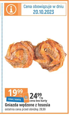 Cena produktu r贸偶ni si臋 w zale偶no艣ci od wybranego sklepu. Produkt Gniazdka z 艂ososia w臋dzonego mo偶esz kupi膰 w promocji ju偶 od 8,99 z艂. Najta艅sza oferta, jak膮 mamy w naszej bazie jest z sieci Carrefour. Gniazdka z 艂ososia w臋dzonego kosztuje aktualnie 8,99 z艂. Zobacz ofert臋
