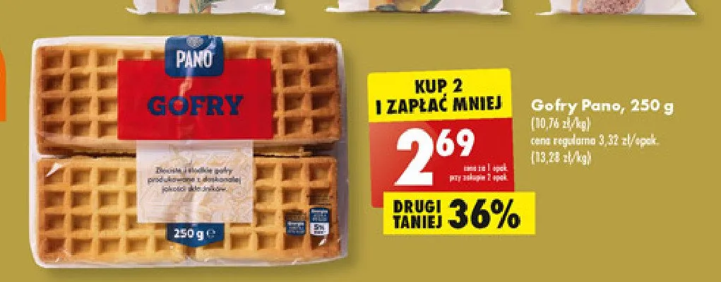 Zastanawiasz si臋, gdzie kupi膰 i ile kosztuje produkt Gofry Pano? Regularnie sprawdzamy, czy jest promocja na ten produkt w Biedronka, Lidl, Kaufland, Auchan, Netto, Makro i innych sklepach. Aktualnie nie posiadamy ofert promocyjnych na ten produkt.