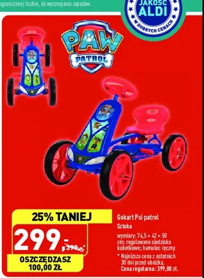 Zastanawiasz si臋, gdzie kupi膰 i ile kosztuje produkt Gokart psi patrol? Regularnie sprawdzamy, czy jest promocja na ten produkt w Biedronka, Lidl, Kaufland, Auchan, Netto, Makro i innych sklepach. Aktualnie nie posiadamy ofert promocyjnych na ten produkt.