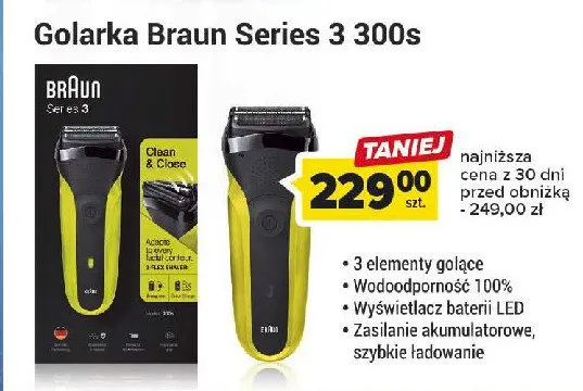 Cena produktu r贸偶ni si臋 w zale偶no艣ci od wybranego sklepu. Niestety nie posiadamy danych o aktualnych promocjach, jednak w艣r贸d archiwalnych ofert Golarka m臋ska 3000s Braun series 3 kosztuje od 199 z艂 do 259 z艂.