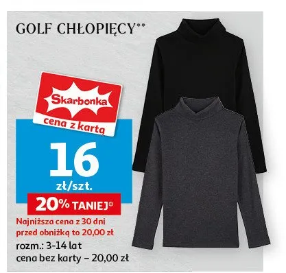 Cena produktu r贸偶ni si臋 w zale偶no艣ci od wybranego sklepu. Niestety nie posiadamy danych o aktualnych promocjach, jednak w艣r贸d archiwalnych ofert Golf ch艂opi臋cy Auchan inextenso kosztuje od 16 z艂.