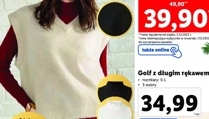 Zastanawiasz si臋, gdzie kupi膰 i ile kosztuje produkt Golf damski rozm. s-l? Regularnie sprawdzamy, czy jest promocja na ten produkt w Biedronka, Lidl, Kaufland, Auchan, Netto, Makro i innych sklepach. Aktualnie nie posiadamy ofert promocyjnych na ten produkt.