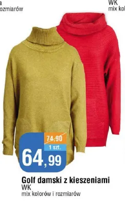 Cena produktu r贸偶ni si臋 w zale偶no艣ci od wybranego sklepu. Niestety nie posiadamy danych o aktualnych promocjach, jednak w艣r贸d archiwalnych ofert Golf damski z kieszeniami kosztuje od 64,99 z艂.