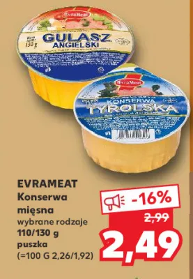 Cena produktu r贸偶ni si臋 w zale偶no艣ci od wybranego sklepu. Niestety nie posiadamy danych o aktualnych promocjach, jednak w艣r贸d archiwalnych ofert Golonka polska Evrameat kosztuje od 2,49 z艂.