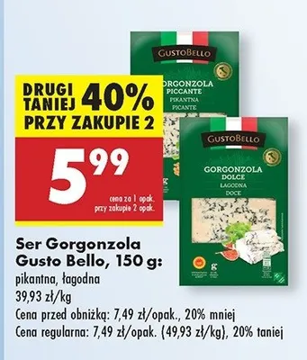 Cena produktu r贸偶ni si臋 w zale偶no艣ci od wybranego sklepu. Niestety nie posiadamy danych o aktualnych promocjach, jednak w艣r贸d archiwalnych ofert Gorgonzola pikantna Gustobello kosztuje od 5,99 z艂.