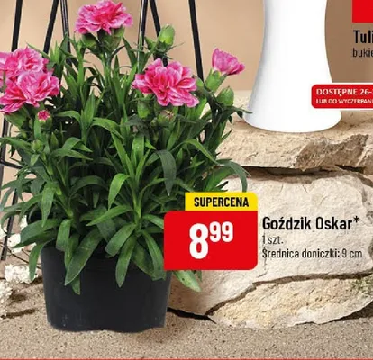 Cena produktu różni się w zależności od wybranego sklepu. Niestety nie posiadamy danych o aktualnych promocjach, jednak wśród archiwalnych ofert Goździk oskar śr. don. 9 cm kosztuje od 5,99 zł do 8,99 zł.