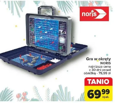 Cena produktu r贸偶ni si臋 w zale偶no艣ci od wybranego sklepu. Niestety nie posiadamy danych o aktualnych promocjach, jednak w艣r贸d archiwalnych ofert Gra na okr臋ty z opcjami 艣wietlnymi bitwa morska Noris (zabawki) kosztuje od 49,99 z艂 do 69,99 z艂.