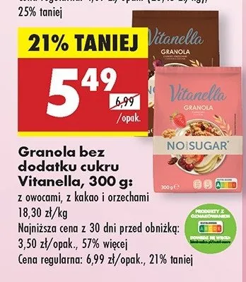 Przegl膮daj podobne oferty promocyjne do Granola z kakao i orzechami bez cukru Vitanella!