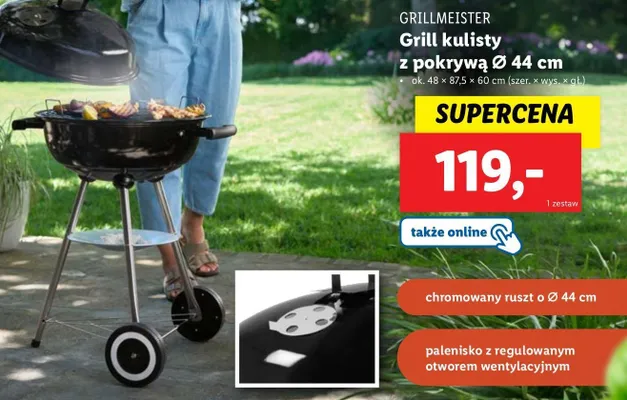 Cena produktu r贸偶ni si臋 w zale偶no艣ci od wybranego sklepu. Niestety nie posiadamy danych o aktualnych promocjach, jednak w艣r贸d archiwalnych ofert Grill kulisty 44 cm Grill meister kosztuje od 119 z艂.