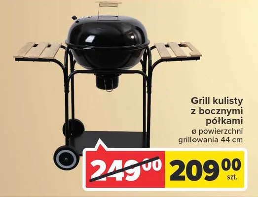 Cena produktu r贸偶ni si臋 w zale偶no艣ci od wybranego sklepu. Niestety nie posiadamy danych o aktualnych promocjach, jednak w艣r贸d archiwalnych ofert Grill ogrodowy z bocznymi p贸艂kami 44 cm kosztuje od 209 z艂.