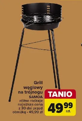 Cena produktu r贸偶ni si臋 w zale偶no艣ci od wybranego sklepu. Produkt Grill w臋glowy samoa 80 cm mo偶esz kupi膰 w promocji ju偶 od 27,99 z艂 do 499 z艂. Najta艅sza oferta, jak膮 mamy w naszej bazie jest z sieci Auchan. Grill w臋glowy samoa 80 cm kosztuje aktualnie 27,99 z艂. Zobacz ofert臋