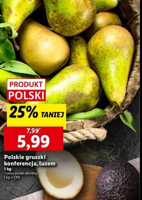 Zastanawiasz si臋, gdzie kupi膰 i ile kosztuje produkt Gruszka konferencja polska? Regularnie sprawdzamy, czy jest promocja na ten produkt w Biedronka, Lidl, Kaufland, Auchan, Netto, Makro i innych sklepach. Aktualnie posiadamy 2 oferty promocyjne na ten produkt. Ceny zaczynaj膮 si臋 od 4,49z艂!