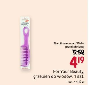 Cena produktu r贸偶ni si臋 w zale偶no艣ci od wybranego sklepu. Niestety nie posiadamy danych o aktualnych promocjach, jednak w艣r贸d archiwalnych ofert Grzebie艅 do w艂os贸w 1 For your beauty kosztuje od 4,19 z艂.
