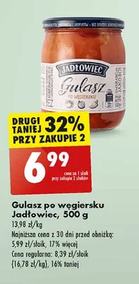 Cena produktu różni się w zależności od wybranego sklepu. Niestety nie posiadamy danych o aktualnych promocjach, jednak wśród archiwalnych ofert Gulasz po węgiersku Jadłowiec kosztuje od 4,49 zł do 6,99 zł.