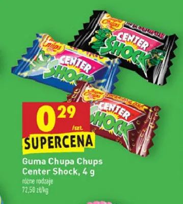 Cena produktu r贸偶ni si臋 w zale偶no艣ci od wybranego sklepu. Niestety nie posiadamy danych o aktualnych promocjach, jednak w艣r贸d archiwalnych ofert Guma o smaku cola Chupa chups center shock kosztuje od 0,29 z艂.