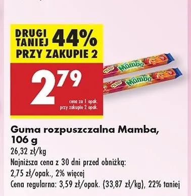 Zastanawiasz si臋, gdzie kupi膰 i ile kosztuje produkt Guma rozpuszczalna wieloowocowa Mamba? Regularnie sprawdzamy, czy jest promocja na ten produkt w Biedronka, Lidl, Kaufland, Auchan, Netto, Makro i innych sklepach. Aktualnie posiadamy 2 oferty promocyjne na ten produkt. Ceny zaczynaj膮 si臋 od 2,99z艂!