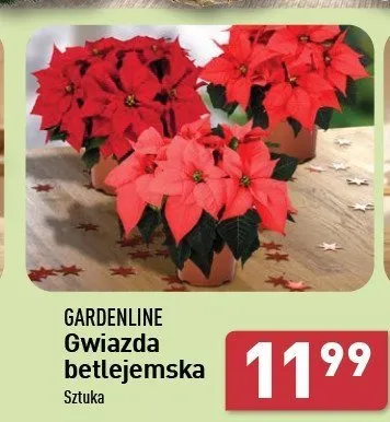 Cena produktu r贸偶ni si臋 w zale偶no艣ci od wybranego sklepu. Niestety nie posiadamy danych o aktualnych promocjach, jednak w艣r贸d archiwalnych ofert Gwiazda betlejemska GARDEN LINE kosztuje od 11,99 z艂.