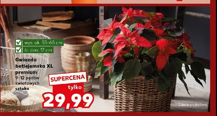 Zastanawiasz si臋, gdzie kupi膰 i ile kosztuje produkt Gwiazda betlejemska poinsecja doniczka 17 cm? Regularnie sprawdzamy, czy jest promocja na ten produkt w Biedronka, Lidl, Kaufland, Auchan, Netto, Makro i innych sklepach. Aktualnie nie posiadamy ofert promocyjnych na ten produkt.