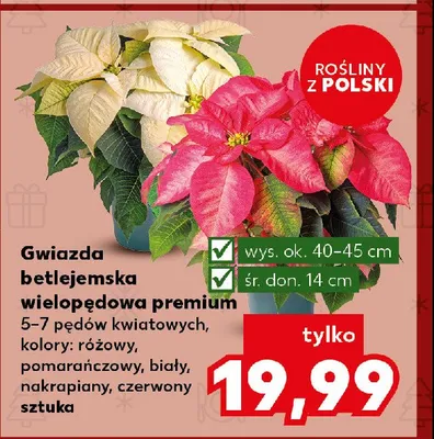 Zastanawiasz si臋, gdzie kupi膰 i ile kosztuje produkt Gwiazda betlejemska wielop臋dowa premium 14 cm nakrapiana? Regularnie sprawdzamy, czy jest promocja na ten produkt w Biedronka, Lidl, Kaufland, Auchan, Netto, Makro i innych sklepach. Aktualnie nie posiadamy ofert promocyjnych na ten produkt.
