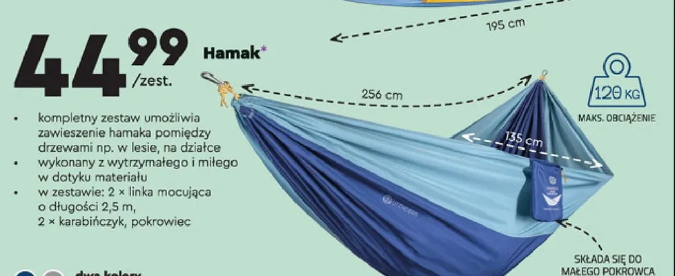 Zastanawiasz si臋, gdzie kupi膰 i ile kosztuje produkt Hamak 256 x 135 cm Utendors? Regularnie sprawdzamy, czy jest promocja na ten produkt w Biedronka, Lidl, Kaufland, Auchan, Netto, Makro i innych sklepach. Aktualnie nie posiadamy ofert promocyjnych na ten produkt.