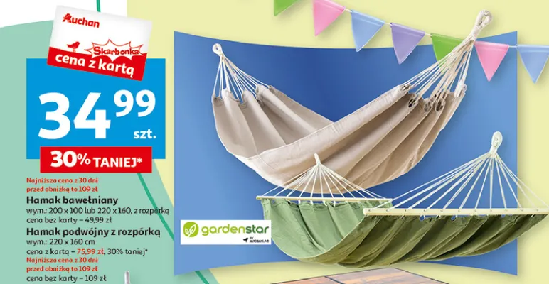 Przegl膮daj podobne oferty promocyjne do Hamak ogrodowy 220 x 160 cm Garden star!