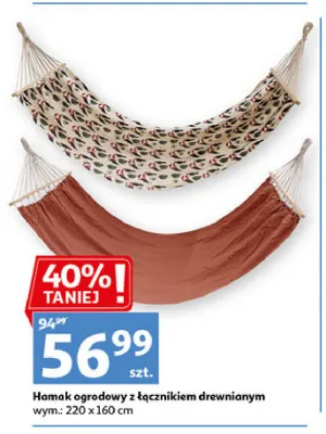 Cena produktu r贸偶ni si臋 w zale偶no艣ci od wybranego sklepu. Niestety nie posiadamy danych o aktualnych promocjach, jednak w艣r贸d archiwalnych ofert Hamak ogrodowy z 艂膮cznikiem drewnianym 220 x 160 cm kosztuje od 56,99 z艂.