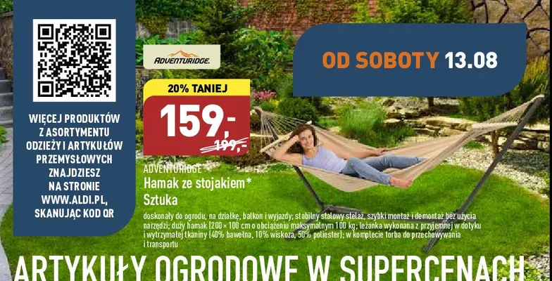 Zastanawiasz si臋, gdzie kupi膰 i ile kosztuje produkt Hamak ze stojakiem? Regularnie sprawdzamy, czy jest promocja na ten produkt w Biedronka, Lidl, Kaufland, Auchan, Netto, Makro i innych sklepach. Aktualnie posiadamy 1 ofert臋 promocyjn膮 na ten produkt. Ceny zaczynaj膮 si臋 od 999,00z艂!