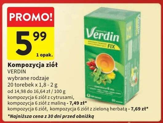 Przegl膮daj oferty promocyjne na produkt Herbata kompozycja 6 zi贸艂 Verdin fix