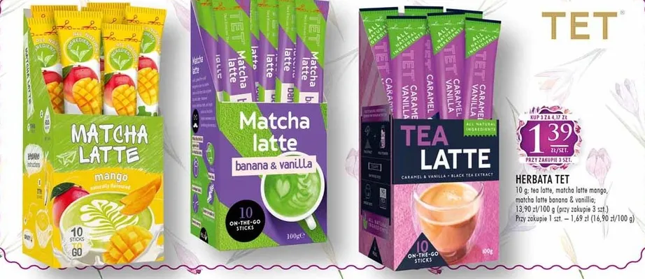 Przegl膮daj podobne oferty promocyjne do Herbata matcha latte banana & vanilla Tet!