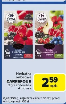 Ile kosztuje Herbata owocowa z hibiskusem owocami aronii 偶urawiny i maliny Carrefour extra?