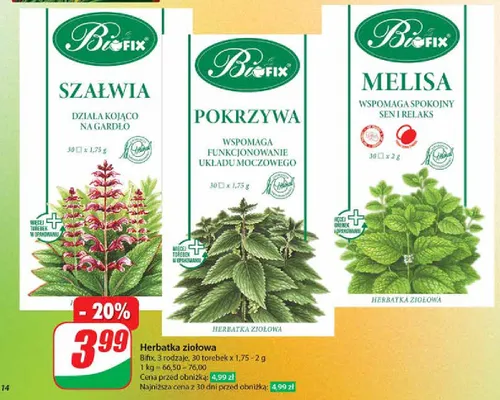 Przegl膮daj oferty promocyjne na produkt Herbatka zio艂owa sza艂wia Bifix