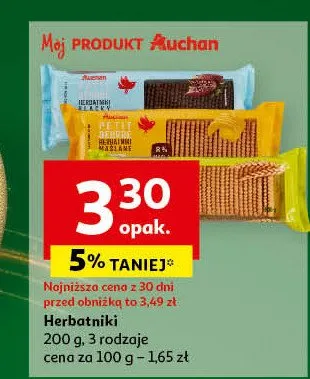 Ile kosztuje Herbatniki czekoladowe Auchan r贸偶norodne (logo czerwone)?