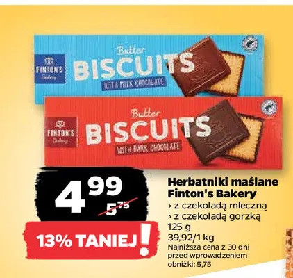 Przegl膮daj oferty promocyjne na produkt Herbatniki ma艣lane w czekoladzie mlecznej Finton's