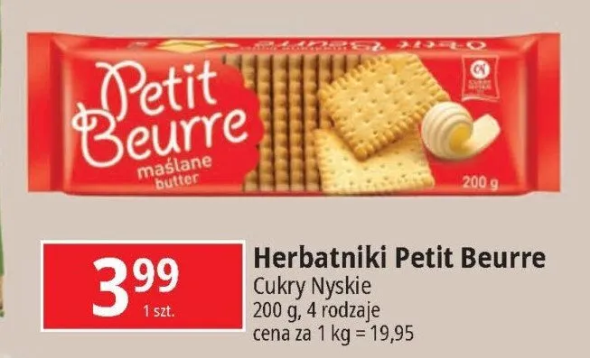 Przegl膮daj oferty promocyjne na produkt Herbatniki petit beurre ma艣lane Cukry nyskie