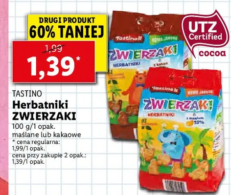 Ile kosztuje Herbatniki z kakao Tastino zwierzaki?