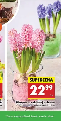 Cena produktu r贸偶ni si臋 w zale偶no艣ci od wybranego sklepu. Niestety nie posiadamy danych o aktualnych promocjach, jednak w艣r贸d archiwalnych ofert Hiacynt w szklanej os艂once kosztuje od 15,99 z艂 do 24,99 z艂.