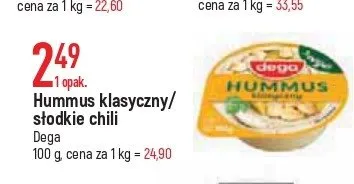 Cena produktu r贸偶ni si臋 w zale偶no艣ci od wybranego sklepu. Niestety nie posiadamy danych o aktualnych promocjach, jednak w艣r贸d archiwalnych ofert Hummus klasyczny Dega kosztuje od 2,49 z艂.