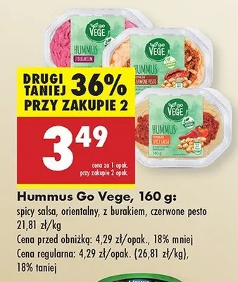 Cena produktu r贸偶ni si臋 w zale偶no艣ci od wybranego sklepu. Niestety nie posiadamy danych o aktualnych promocjach, jednak w艣r贸d archiwalnych ofert Hummus z toppingiem spicy salsa Govege kosztuje od 3,49 z艂.