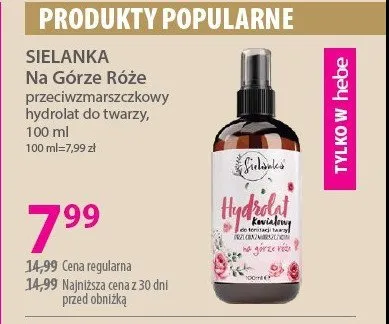 Hydrolat do twarzy na g贸rze r贸偶e Sielanka promocje w sklepach - znajd藕 ofert臋 dla siebie!