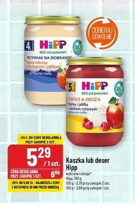 Przeglądaj podobne oferty promocyjne do Jabłka i maliny z kleikiem orkiszowym Hipp owoce i zboża!