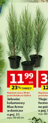 Cena produktu r贸偶ni si臋 w zale偶no艣ci od wybranego sklepu. Niestety nie posiadamy danych o aktualnych promocjach, jednak w艣r贸d archiwalnych ofert Ja艂owiec kolumnowy blue arrow 40-60 cm kosztuje od 11,99 z艂 do 13,99 z艂.