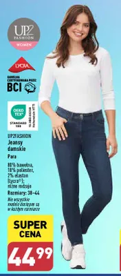 Cena produktu r贸偶ni si臋 w zale偶no艣ci od wybranego sklepu. Produkt Jeansy damskie 38-44 Up2fashion mo偶esz kupi膰 w promocji ju偶 od 44,99 z艂. Najta艅sza oferta, jak膮 mamy w naszej bazie jest z sieci Aldi. Jeansy damskie 38-44 Up2fashion kosztuje aktualnie 44,99 z艂. Zobacz ofert臋