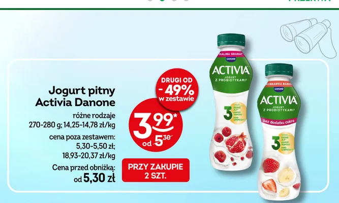 Przegl膮daj podobne oferty promocyjne do Jogurt bez cukru truskawka-banan Danone activia!