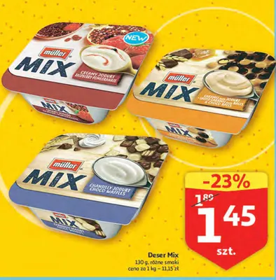 Zastanawiasz si臋, gdzie kupi膰 i ile kosztuje produkt Jogurt caramel & choco balls Muller mix? Regularnie sprawdzamy, czy jest promocja na ten produkt w Biedronka, Lidl, Kaufland, Auchan, Netto, Makro i innych sklepach. Aktualnie nie posiadamy ofert promocyjnych na ten produkt.