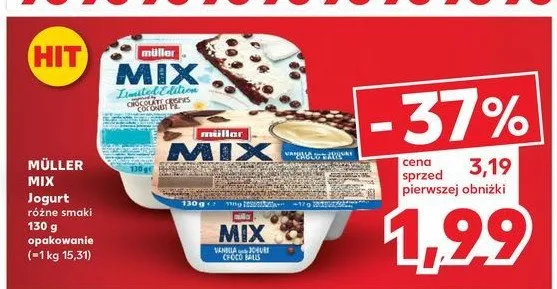 Cena produktu r贸偶ni si臋 w zale偶no艣ci od wybranego sklepu. Niestety nie posiadamy danych o aktualnych promocjach, jednak w艣r贸d archiwalnych ofert Jogurt kokosowy z kulkami Muller mix kosztuje od 1,99 z艂 do 2,13 z艂.